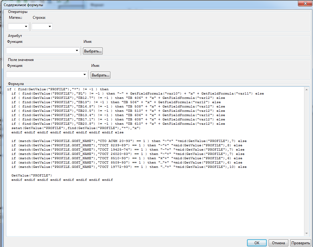 Формула поля Профиль