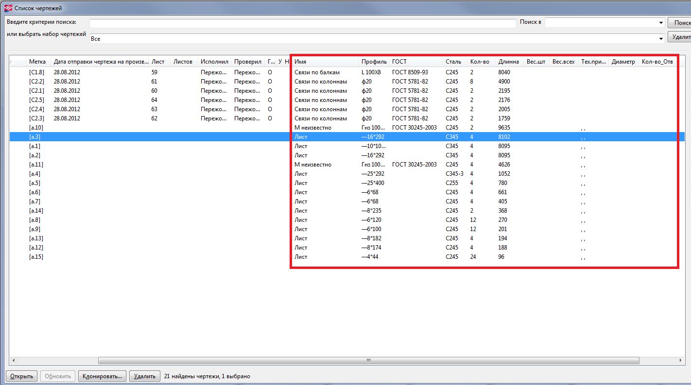 Марки по типам для теклы не различимы на уровне ядра.alstey писал(а):Почему в ведомости отправочных марок на колонны считает массу сборок с учетом наплавки, а ведомости отправочных марок на балки считает без наплавки? На сборочных чертежах и колонн и балок наплавленный металл учитывается. Компоновки на монтажных схемах и колонн и балок одинаковые- КМД_ВИД ОБЩЕЙ+МАРКИ+БОЛТЫ.