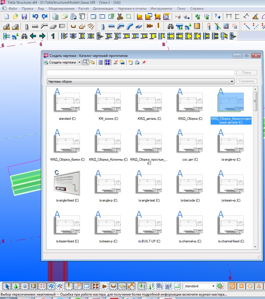 При выборе в каталоге чертежей прототипов прототипа "КМД_Сборка_балки+отдельные детали" сборочный чертеж не создается