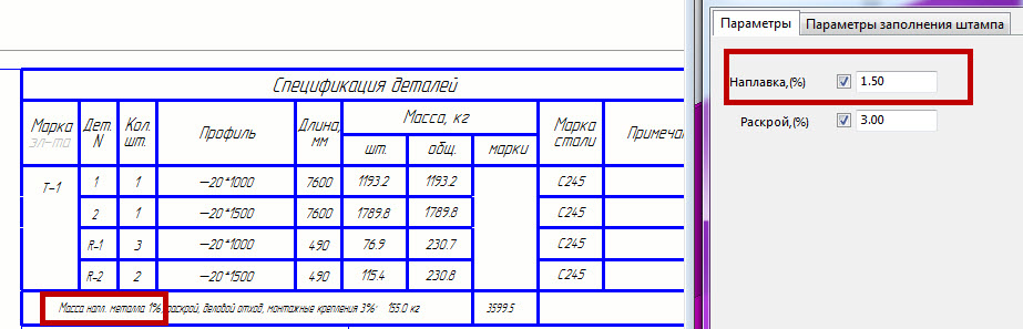 Как поправить шаблон КМД_002_Спецификация деталей сборки.tpl для отображения 1,5% в ячейке для массы наплавленного металла
