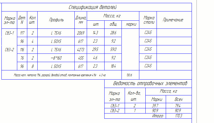 1- Касательно шаблона спецификации (016_КМ Спецификация металлопроката.xls) . При генерации с модели тех.спец стали, информация в спецификации не полностью отображена (ячейки на пересечении профилей и вида конструкций не содержат соответствующих данных по весу металла, а суммарный вес внизу таблицы указан верно) , с чем это связано? и можно ли сделать чтоб ячейки были соответственно заполнены ( прогоны, фермы, связи ...., а не только колонны балки и прочее)?