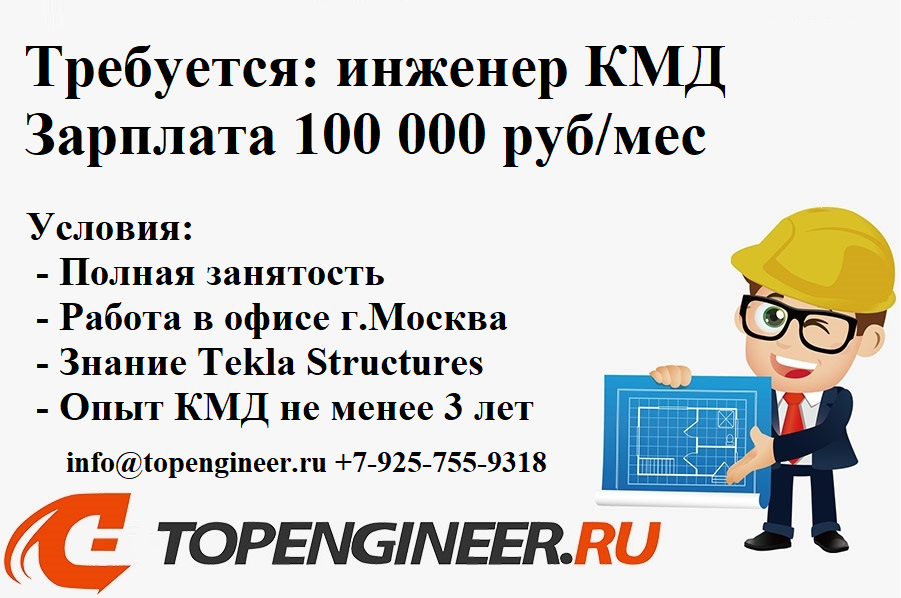 Инженер КМД (Tekla Structures) с опытом работы от 3 лет 100 тыс. руб.