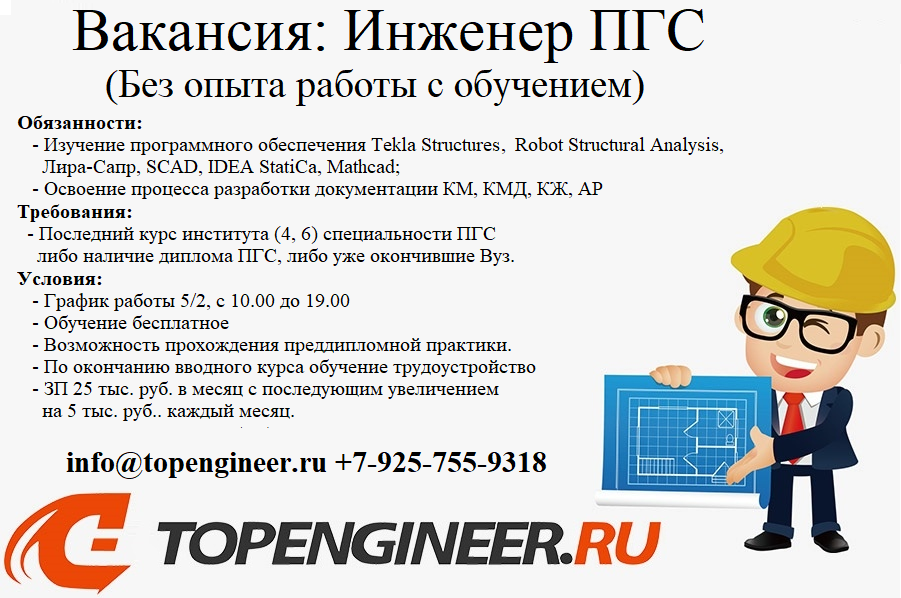 Требования к кандидату: последний курс института (4, 6) специальности ПГС либо наличие диплома ПГС, либо уже окончившие вуз.