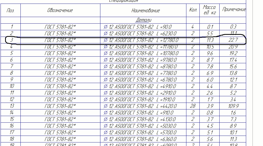 Да все правльно: 23 позиция всего 3 группы стержней в первой 7 штук, во второй 9, в третьей 11 - так вот мне надо что б они в одной строке отображались и количество было 27 штукCuPo>I<a писал(а):я ж не про это