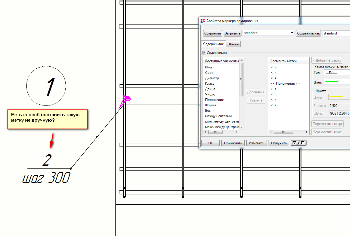 Там все настраивается.alstey писал(а):Подскажите, как правильно задавать метки армирования.