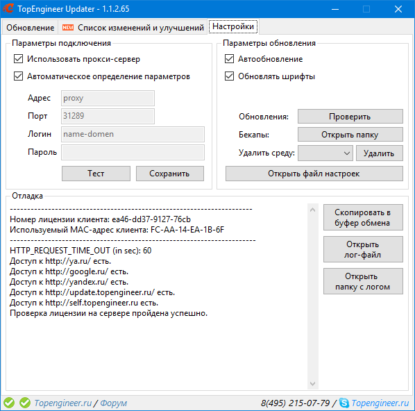 - В настройках апдейтера добавлена ссылка на папку с бекапами среды (делаются перед каждым обновлением), функция проверки всех обновлений, как при запуске.