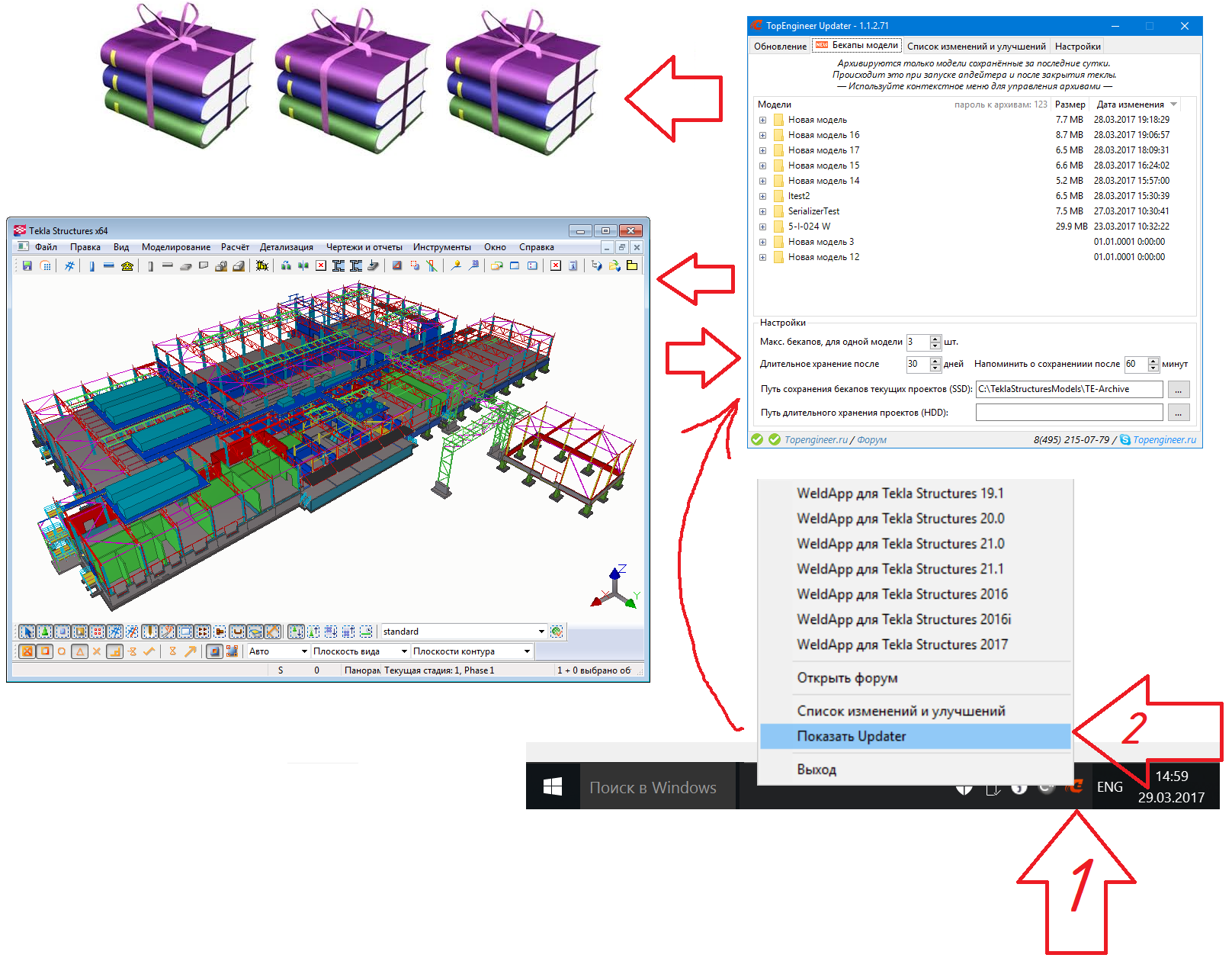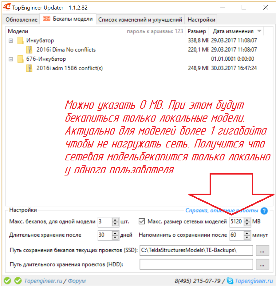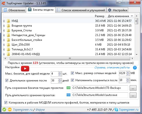 Архив создается после закрытия программы Tekla Structures и при запуске самой программы TopEngineer-Updater.
