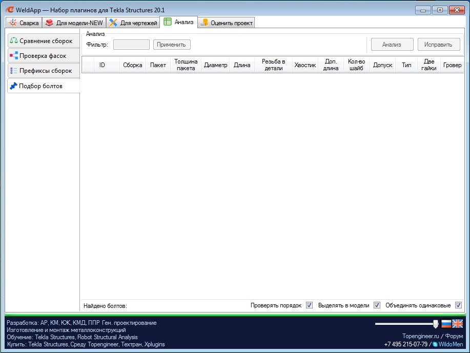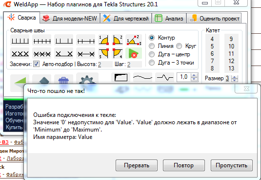 Добрый день, вчера после обновления вылезла такая же проблема. Запускаю WeldApp, вылезает ошибка. Если нажать кнопку "Пропустить", плагины включаются, но во вкладках "Префиксы сборок" и "Подбор болтов" кнопки неактивны. Все остальное вроде работает.