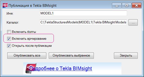 Кто нибуть пользовался приложением Tekla Web Viewer ?Подскажите как сделать чтобы отображалась(импортировалась) арматура?Анологичная ситуация в Tekla BIMsight, хотя при публикации есть возможность Включить армирование.С болтами тоже такая же ситуация.