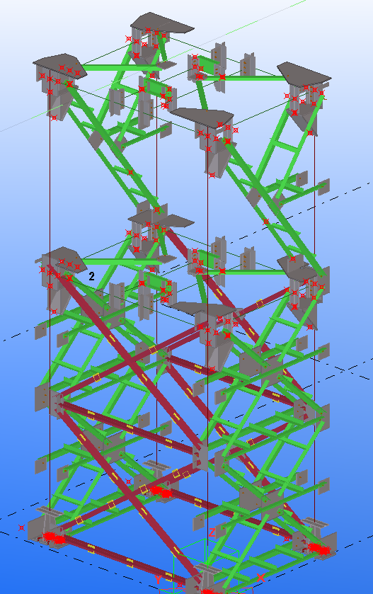Ферма со спаренных уголков. Раскосы, стойки и пояса - сборки. Теперь с этих сборок слепить сборку-ферму.