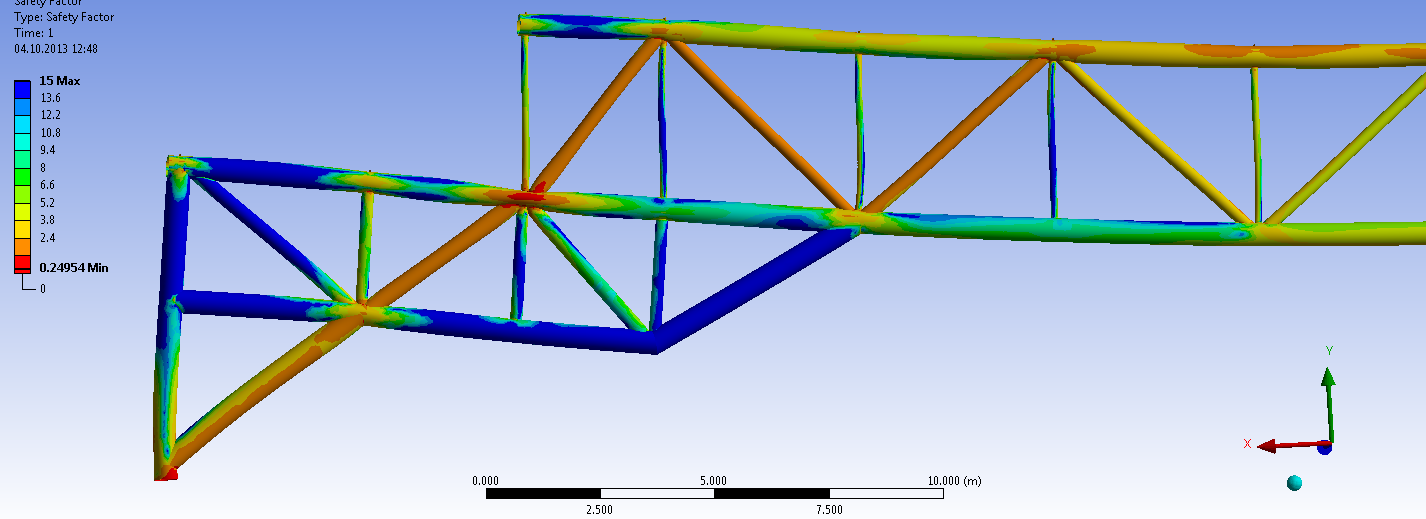 На самом деле- я тоже наиболее сложные узлы так считаю. Просто надо не забывать о том, что реальная конструкция и модель - две большие разницы. И для таких трубчатых бесфасоночных соединений есть пособие по расчету, особое внимание надо обращать на сварные швы - обычно они самое слабое место данного узла.