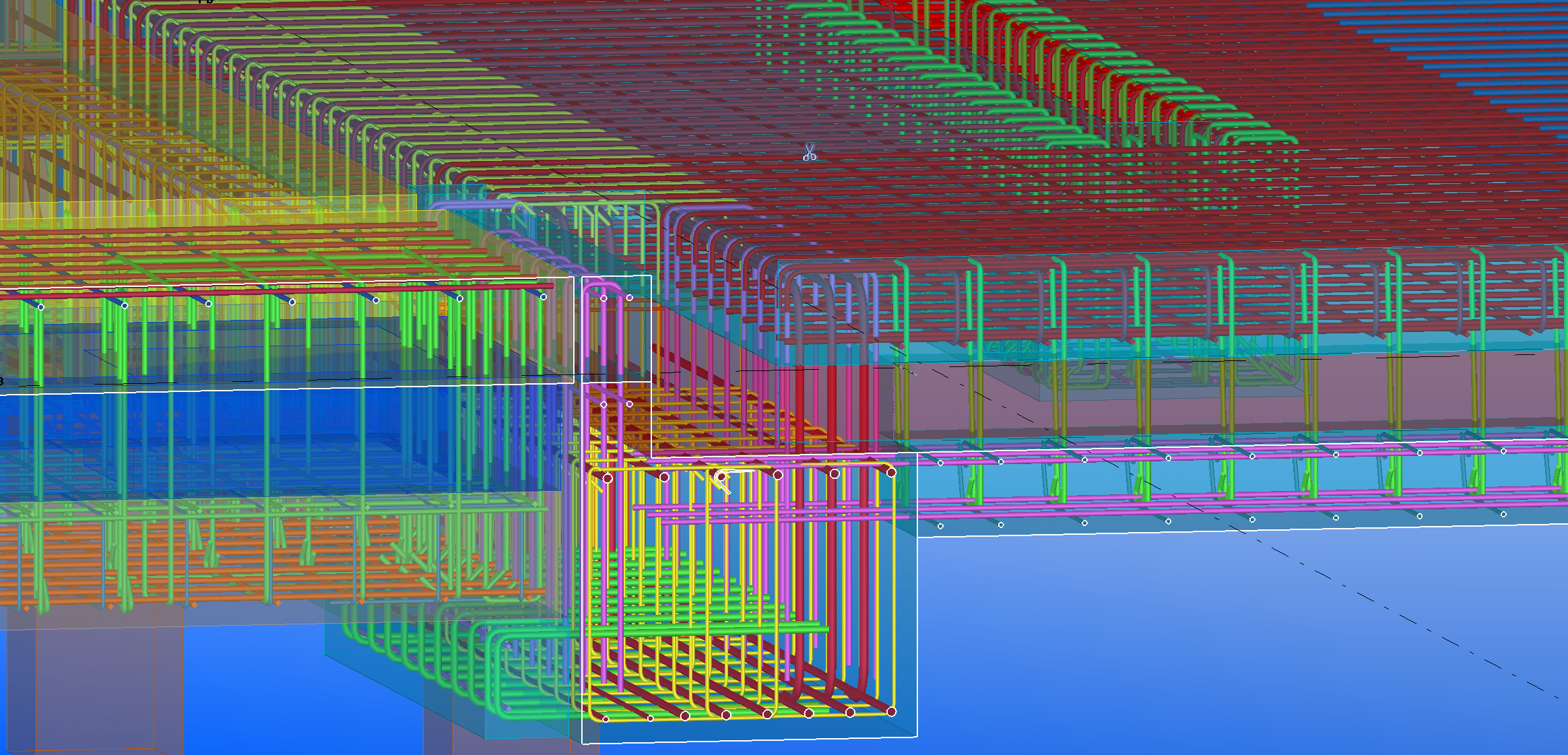 По раскладке все равно получится пересечение арматуры плиты и выпусков под колонны. Или боковых П-образных стержней и арматуры плиты.Sega писал(а):Да, в основном через группы. Увязка чего с чем?Армирование было выполнено через группу арматурных стержней?