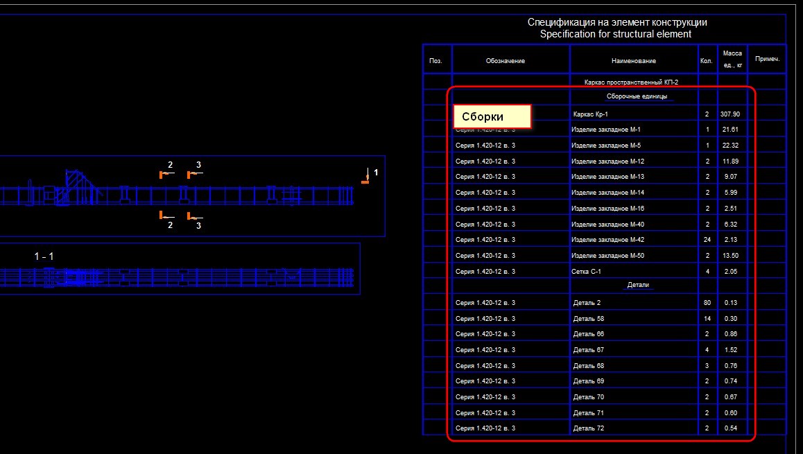Пока в спецификацию выводит только сборки (закладные) и сборки, из которой состоит многоуровневая сборка.
