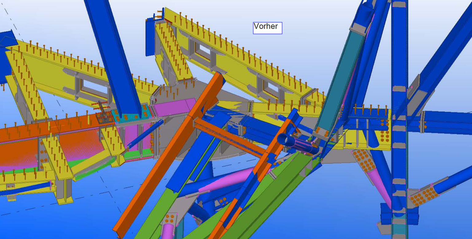 В теории выглядит следующим образом - в пакете для графического моделирования формируется массив точек и алгоритм конструкции. Причем форма задается сплайнами, точками, и т.п. А из этого формируется набор элементов, которые уходят в теклу в виде отдельных элементов с профилями. В текле разрабатываются узлы и из неё уходят в расчетный пакет.