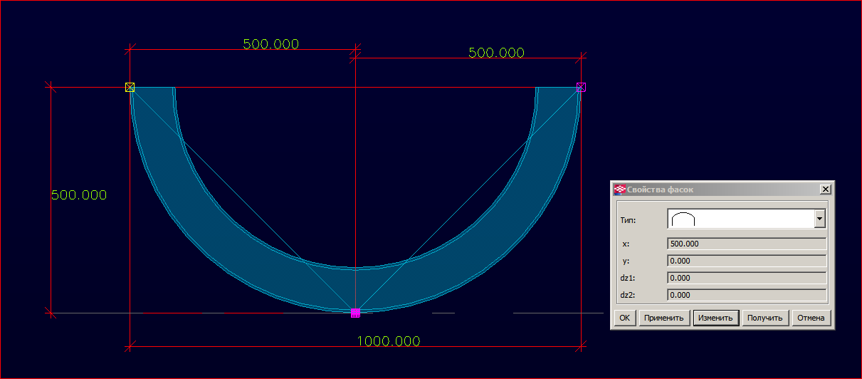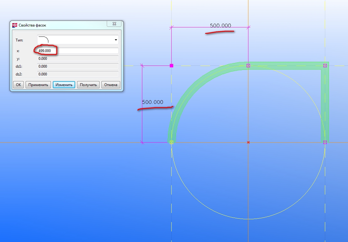При построении поясов составными балками определял нужный радиус гиба двойным щелчком на средней ручке составной балки, затем перемещал ее до условной линии перемещения касательной и перпендикуляра к хорде и при перемещении на нужную длину получил вырождение объекта. Точно так же происходит и с пластинами. В результате пришлось "подгонять" значения и в итоге выползли неточности и коллизии в элементах. Для простого понимания эффекта, я создал прототип- составную балку по радиусу 500 и попытался закруглить фаски по радиусу 500 и тоже получил вырождение. На радиусе 499 закругляет. Я так понял, что в моей ситуации с бОльшим радиусом около 20м подобная подгонка и приводит к вышеуказанным коллизиям? Существует ли возможность в текле точно моделировать подобные вещи?