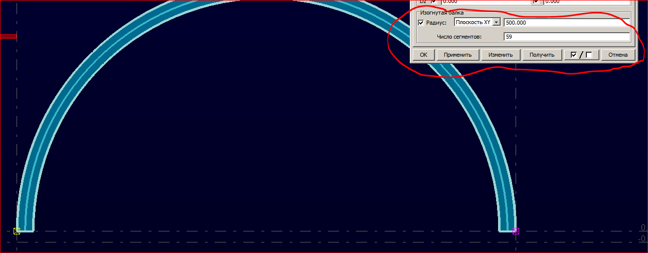 Подскажите, как можно отфильтровать изогнутую балку , например радиус которой 9000 мм число сегментов 20.