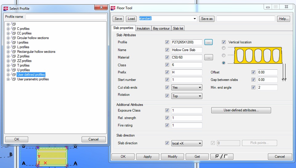 Я пробовал использовать floor tool из каталога компонентов, но там не нашлось нужного профиля.