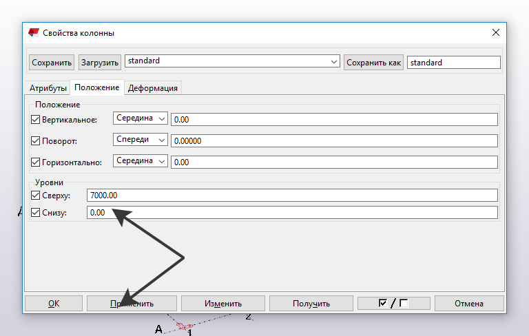2. Не нужно все воспринимать так буквально)) Вот окно свойств колонны. Ввели требуемый уровень, нажали "применить". Все следующие колонны будут строится с такой отметкой.