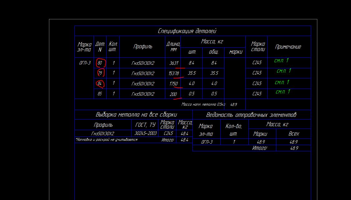 - как же это и в рабочем чертеже будет смотреться, я понял что в чертеж КМД пойдут хлысты и их общая длина и масса и марок будет столь сколько хлыстов. НО деревянные же пронумеруються и будет кучу марок... на монтажной схеме.