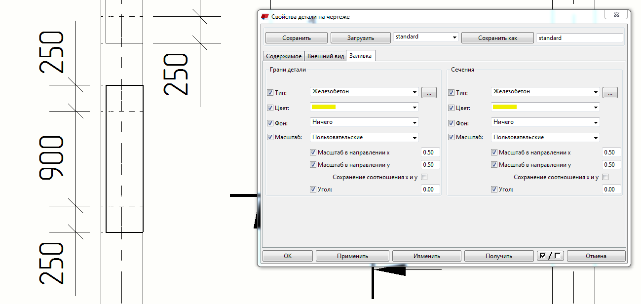 Штриховка элементов и объем элементов Tekla Structures