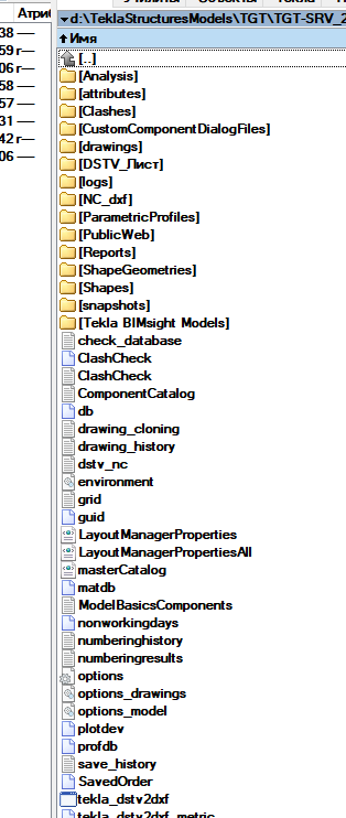 Содержание папки модели Tekla Structures