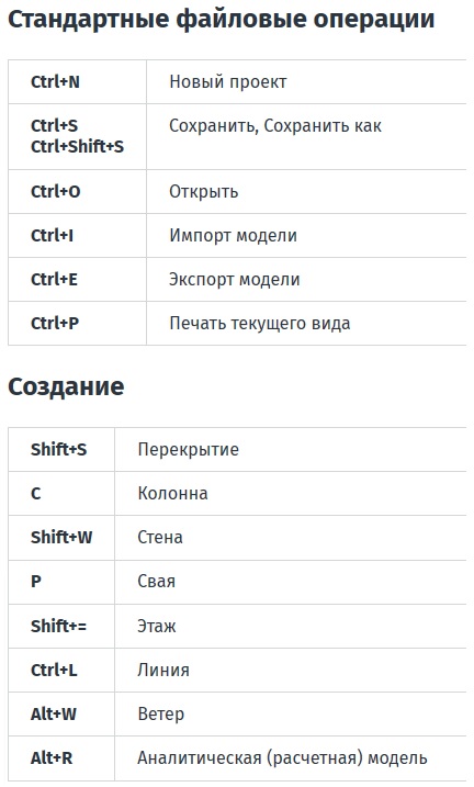 Для оперативного управления программой САПФИР и её инструментами можно использовать команды, инициируемые нажатием определённых комбинаций клавиш (клавиатурные сокращения, шорткаты).