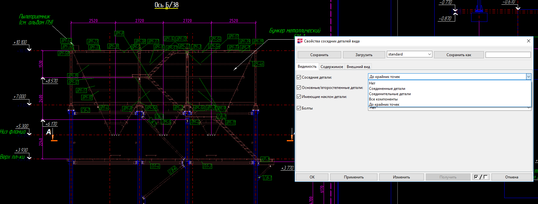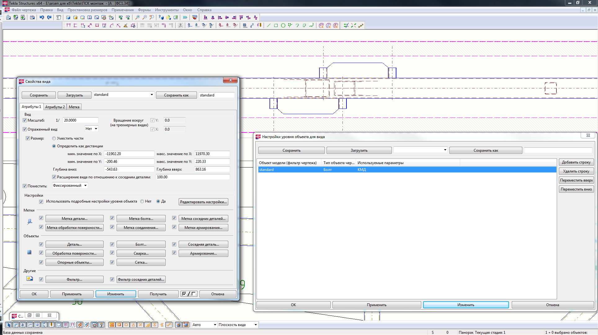 Отображение соседних деталей на чертежах общего вида TeklaStructures.