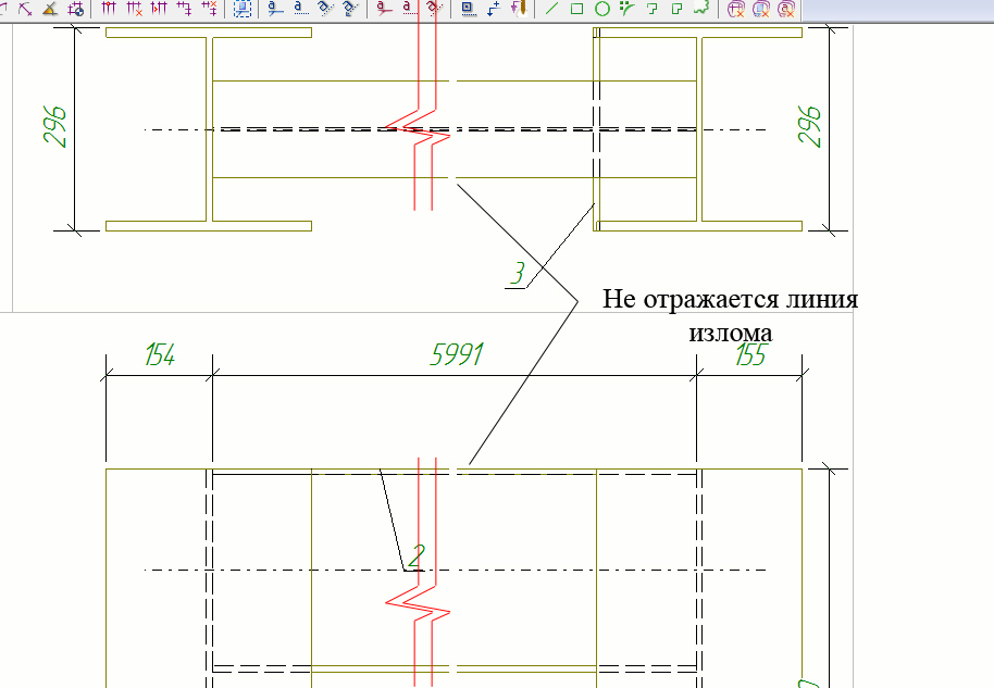 Добрый день! Подскажите как отобразить ломаную линию на чертеже, в каких настройках ее можно найти?