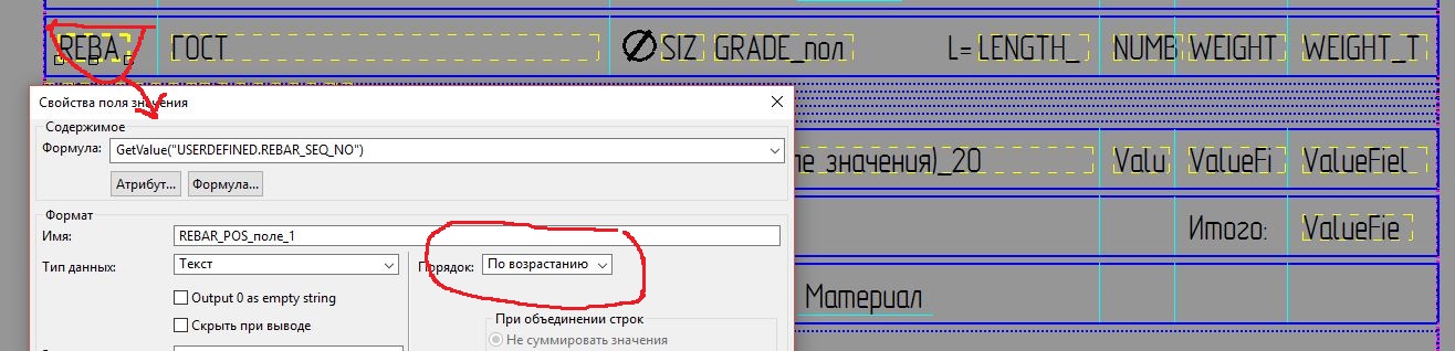 7. открываем в редакторе шаблонов "ведомость деталей". в поле значения позиции арматуры так же ставим формулу: