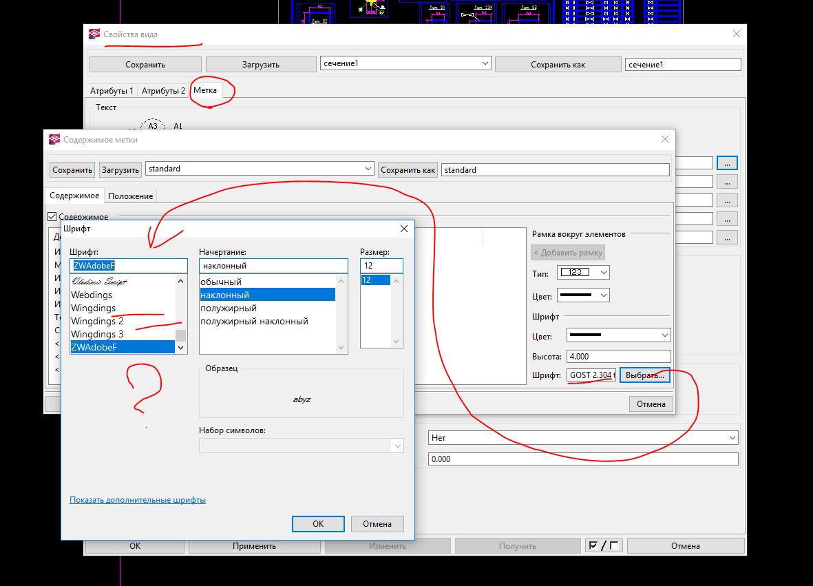 получается в свойствах символа - пишется "буква", а на сечении "цифра"