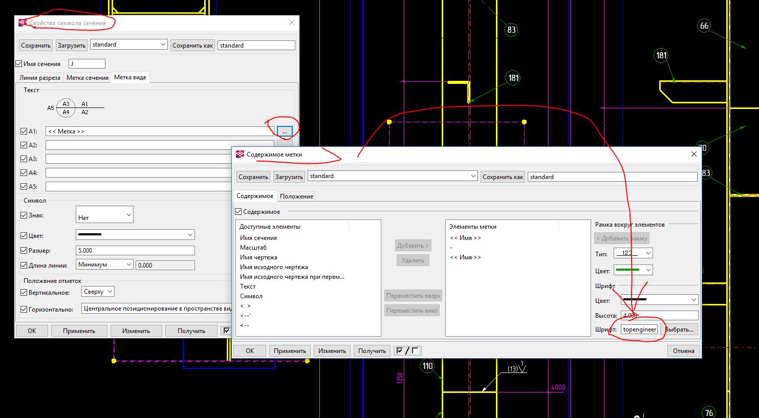 подскажите как сделать так чтоб вместо букв сечения обозначались цифрами.?