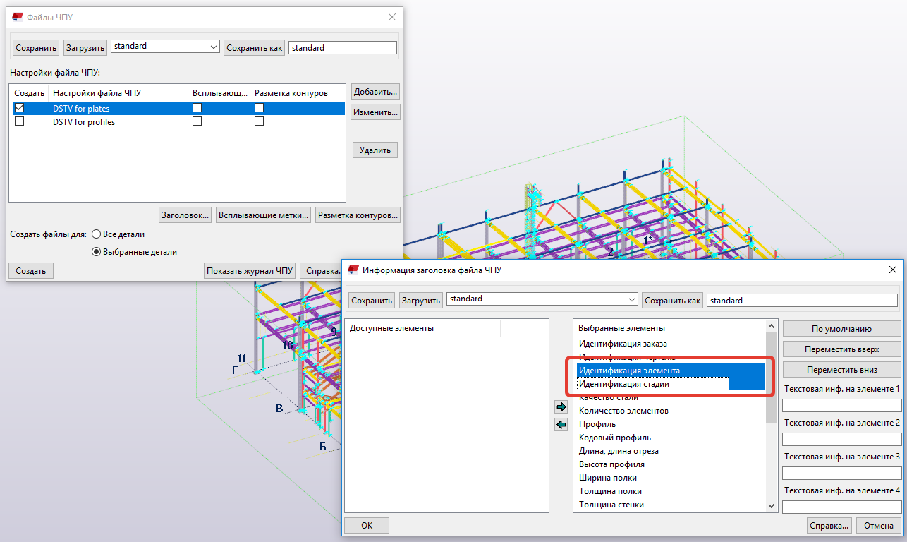 Если этот расширенный параметр установлен в значение TRUE, в файлы DSTV включаются штампы для главных деталей и всех видов второстепенных деталей. Если он установлен в значение FALSE, штампы создаются только для главных деталей. Значение по умолчанию — FALSE.