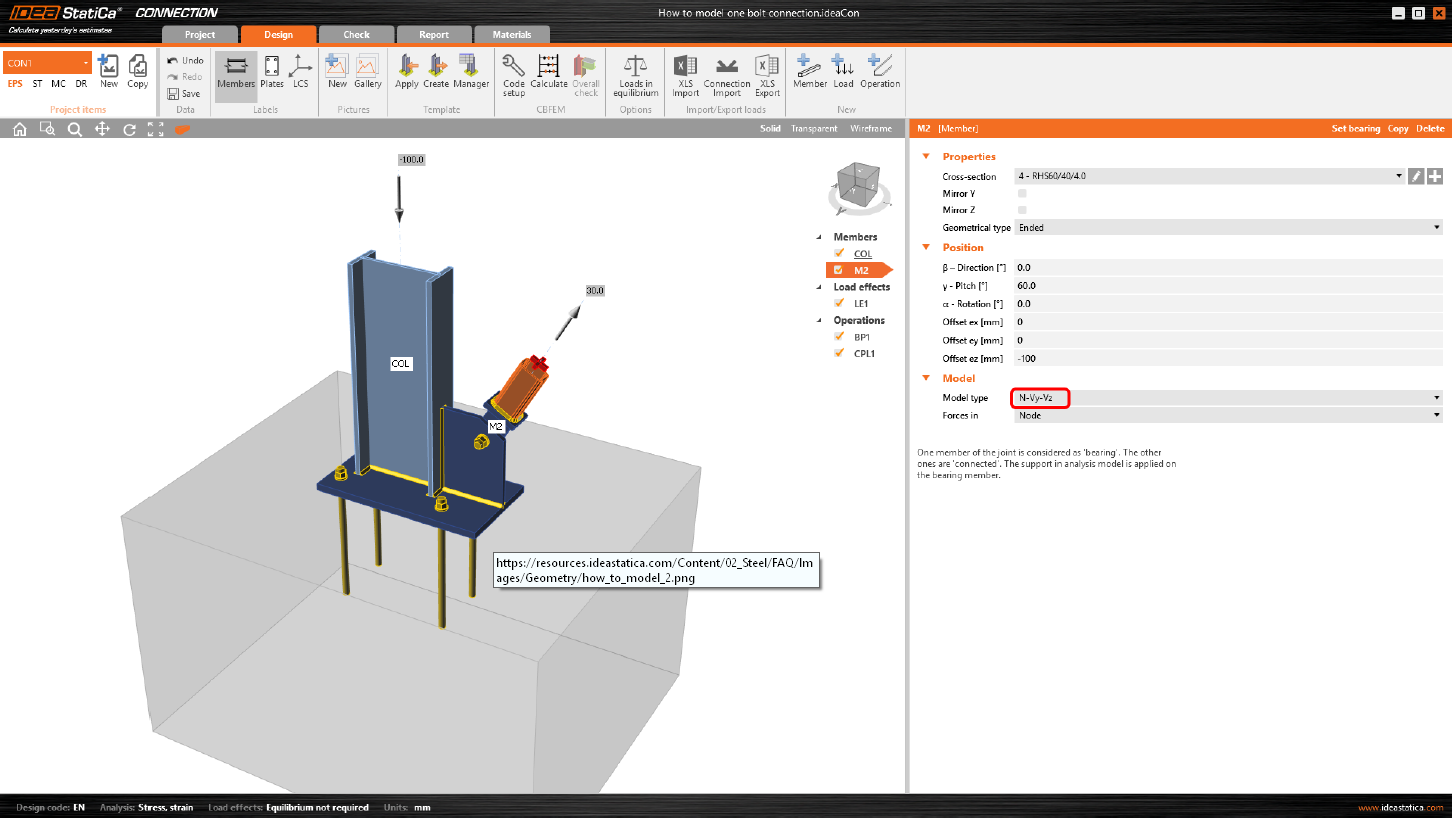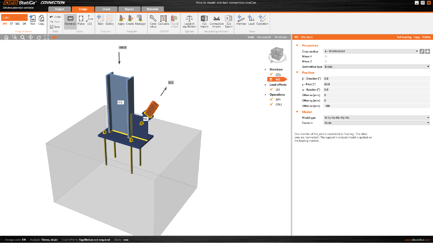 Как замоделировать одноболтовое соединение в IDEA StatiCa