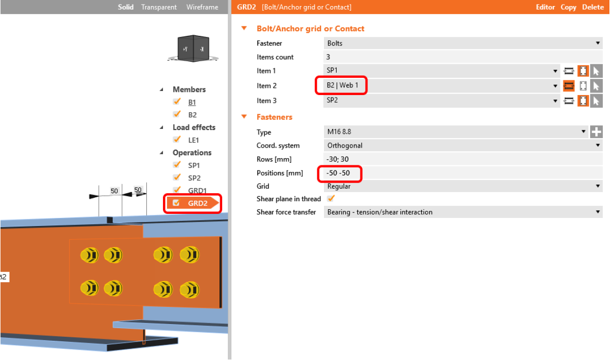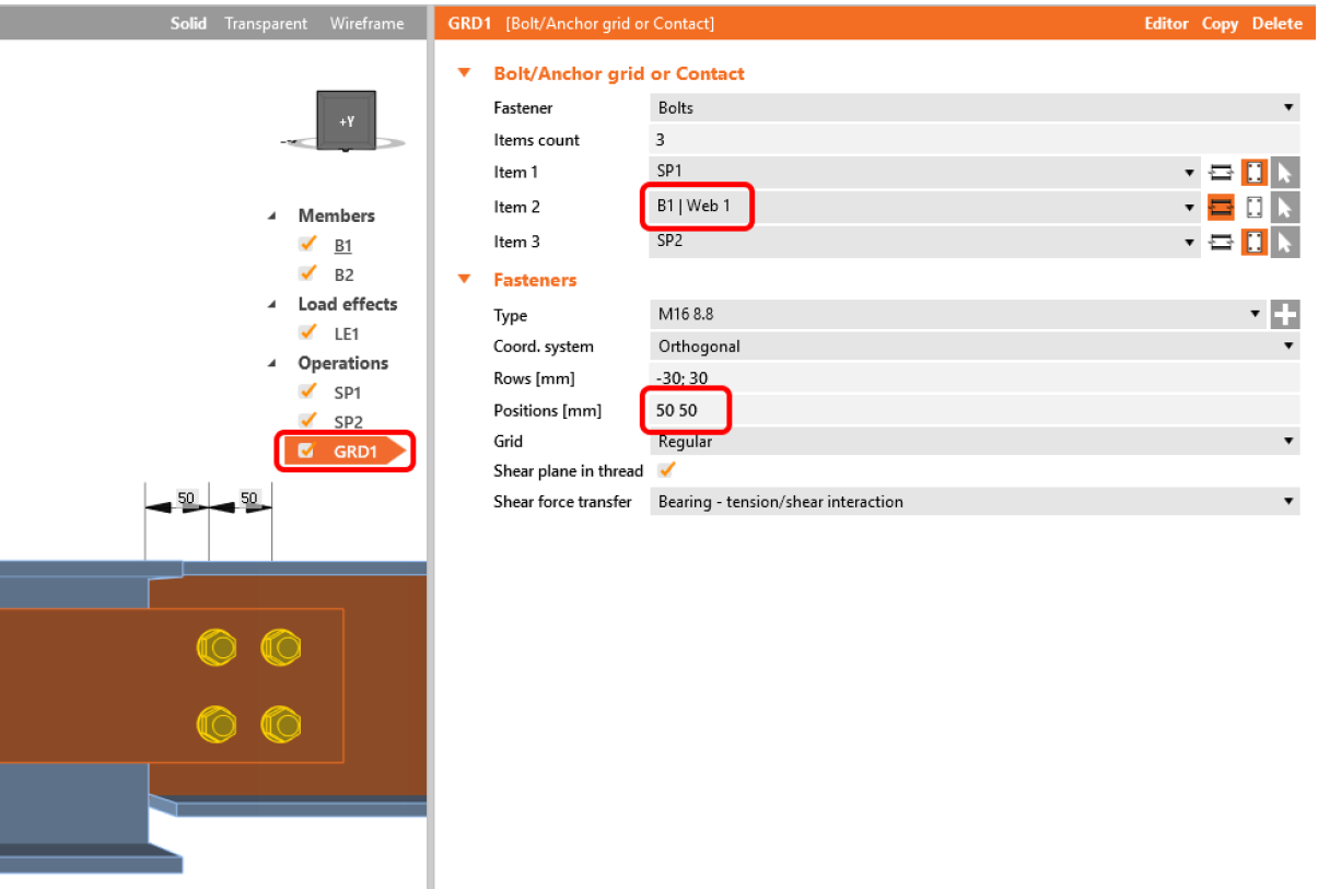 Поэтому в данном эти 8 болтов нужно разделять на две монтажные операции. Сперва следует задать GRD1 из 4 болтов для элемента В1 с нужным расположением.