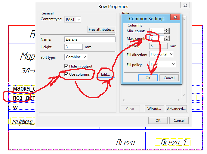 1. Я как раз и показал как сделать колонками чтобы спецификация меняла количество столбцов.dyr писал(а):Спасиба. Почти так и сделал. Уменьшил высоты строк. Я надеялся на раздел таблицы в две строки. Но такое не предусмотрено. И еще вопросик. Нету фильтров отдельно на визуальную часть чертежа, отдельно для шаблонов (таблиц)?