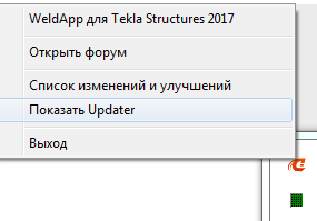 5) Нажать правой кнопкой на иконкеTopengineerUpdater в трее и выбрать необходимую версию приложения согласно используемой версии Tekla Structures