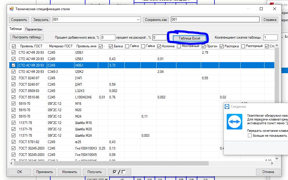 Проблема 1 - Появилась возможность заменять имя профиля и ГОСТ. В настройках таблицы. Параметры ->Открыть госты для технической спецификации стали. Меняем интересующие нас профили на нужные. Добавляем нужные госты. Примеры и инструкция в файле.daiman444 писал(а): ↑06 авг 2017, 15:02Подразобрался с моим вопросом выше, но возник следующий вопрос. возникла проблема с отображением правильного названия профилей.