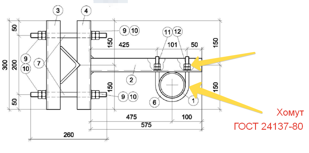 Хомут по ГОСТ 24137-80 в Tekla Structures