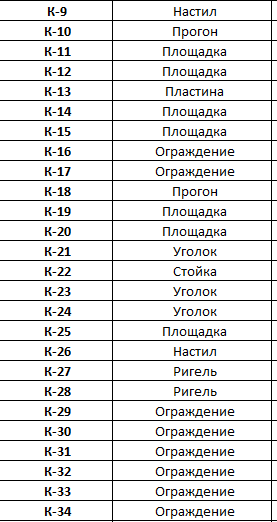 Давайте элементам нормальные префиксы. К - колонны. Ог - ограждение. Р- ригель. конечно, если все подряд названо "К", то и нумерация будет некрасивой