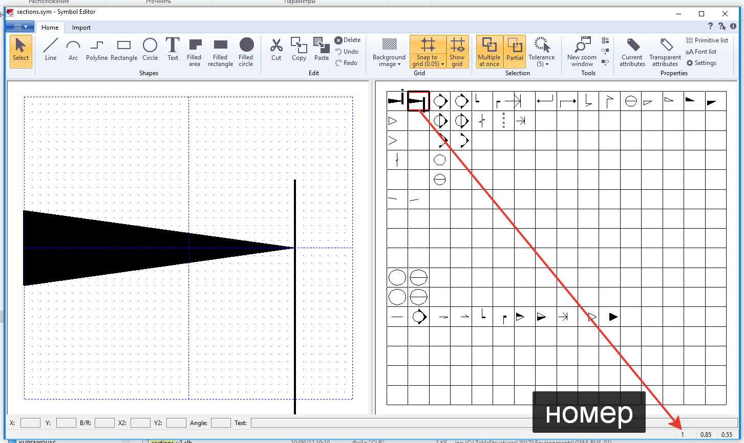 Когда символ готов, ищем расширенные параметр в Tekla (Ctrl+E) и назначаем номер символа в виде "sections@24", где после @ идет номер символа: