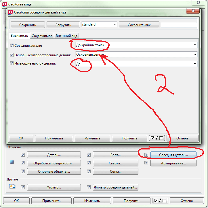 Также есть пункт меню "Фильтр соседних деталей" - он определяет какие детали считать соседними (из тех, которые не попали в основные), отображение соседних деталей должно быть включено.