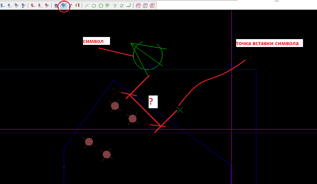 При вставке символа вдоль линии в чертеже, символ вставляется на расстоянии от точки вставки. Как сделать так что б символ вставлялся непосредственно в точке вставки?