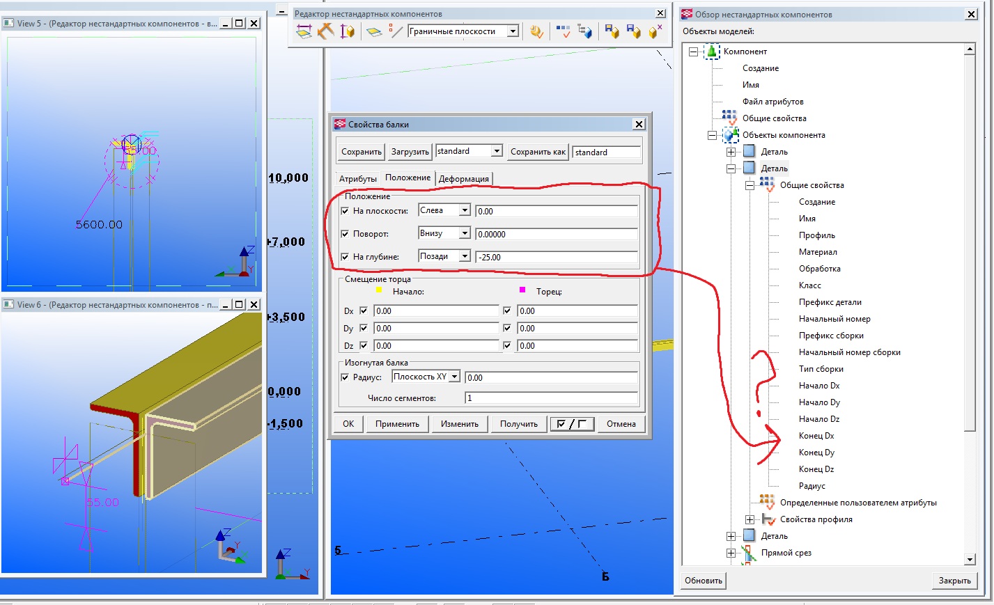 Здравствуйте! Нужна помощь! Столкнулся с проблемой: нужно создать параметрический компонент типа "деталь" из уголков. При этом в чертежах опорной линией этих самых уголков хочу воспользоваться в качестве геометрической оси элемента, проходящей через центр тяжести сечения. Файл данных с привязками центров тяжестей уголков прицепил - работает. А вот нужных свойств в редакторе компонентов, увы, не нашел. Dx, Dy, Dz смещают не только элемент, но и его опорную линию - соответственно бесполезны в данной ситуации. Нужны именно параметры "на глубине" и "на плоскости" чтобы менять их значение в зависимости от профиля уголка. Может быть кто-то уже решал подобную задачу, или просто есть идеи.
