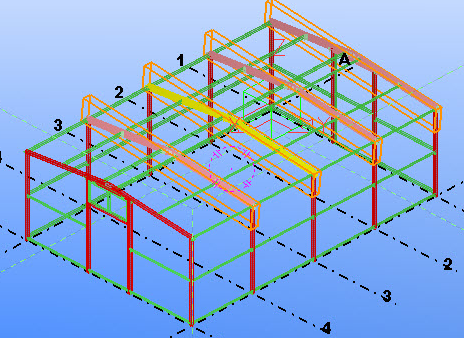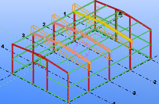 Создаем трехмерную модель каркаса здания согласно требуемой геометрии (архитектуры) и подбора профилей несущих элементов.