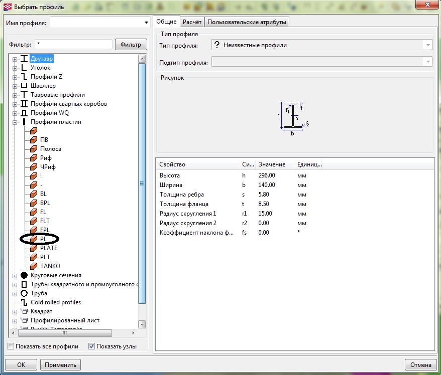 Привет. Еще раз про гнутую пластину: пробую составной балкой - рисуется двутавр, при попытке заменить профиль на пластину, пишет нет такого профиля (выбираю "профили пластин PL"), что делать?