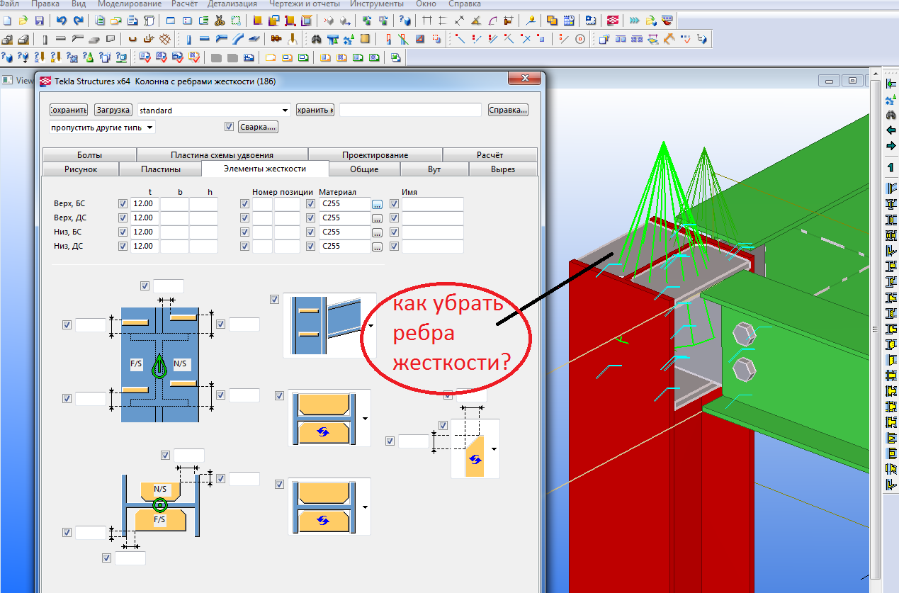 Всем доброго! Подскажите как убрать два дополнительных ребра жесткости из компоненты №186. Рисунок прилагаю.