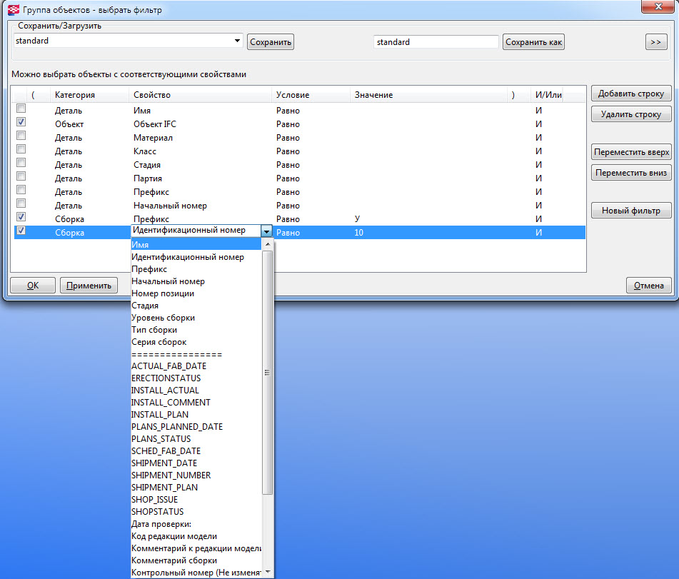 еще момент. создавай для разных случаев отдельные фильтры (для сборок, для деталей, для материала и т.д.). то есть удаляй все строки из фильтра стандарт и сохраняй нужные фильтры под новыми именами.
