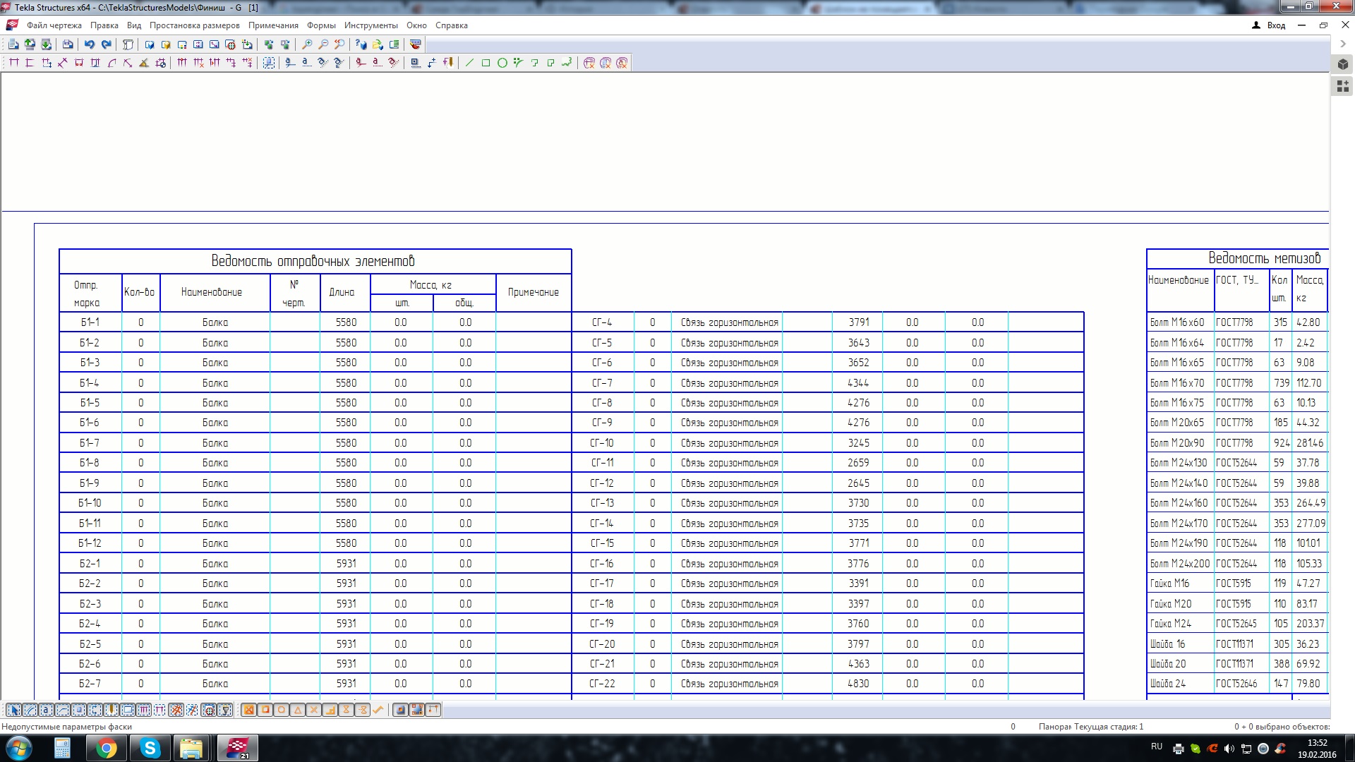 Re: Ведомость отправочных элементов при разработке КМД Tekla Structures