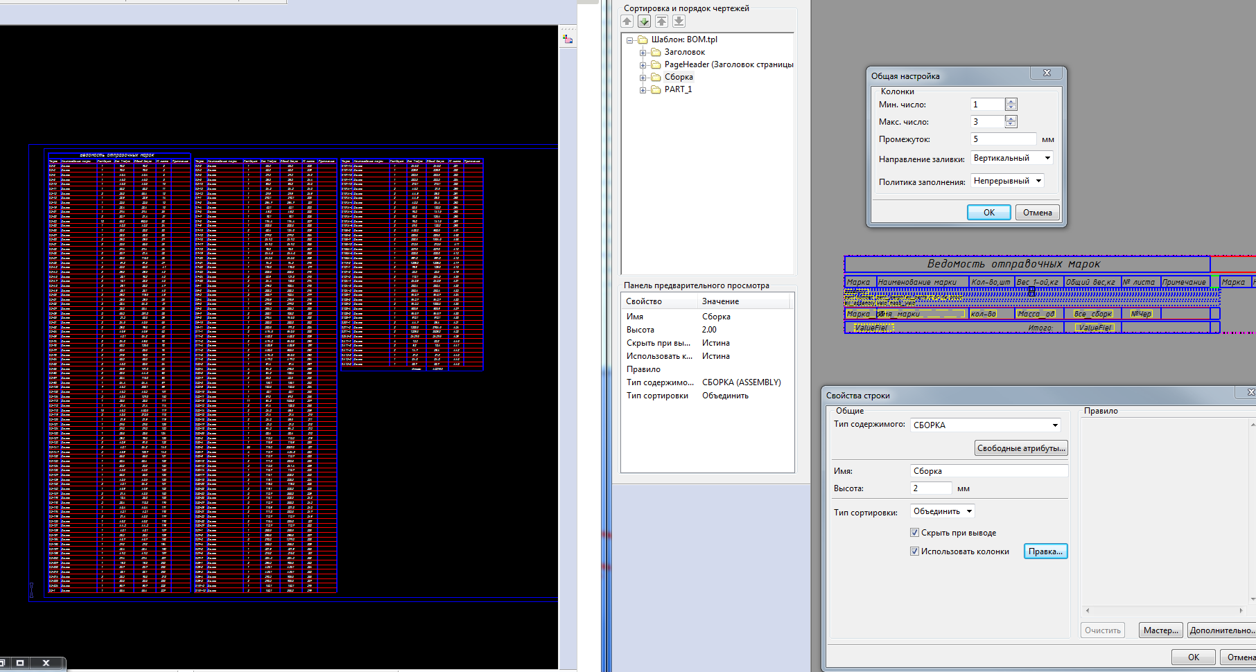 Я увеличил ширину таблицы, добавил верхний колонтитул к новому столбцу, у сборки выбрал возможность использования столбцов-таблица поделилась на столбцы, но почему-то все данные по кол-ву и массе превратились в нули. Можешь прикрепить пример своей спецификации?