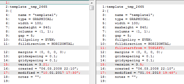 Есть ли возможность сохранить шаблон из более поздней версии template editor, чтобы открыть его в более "старом" редакторе?